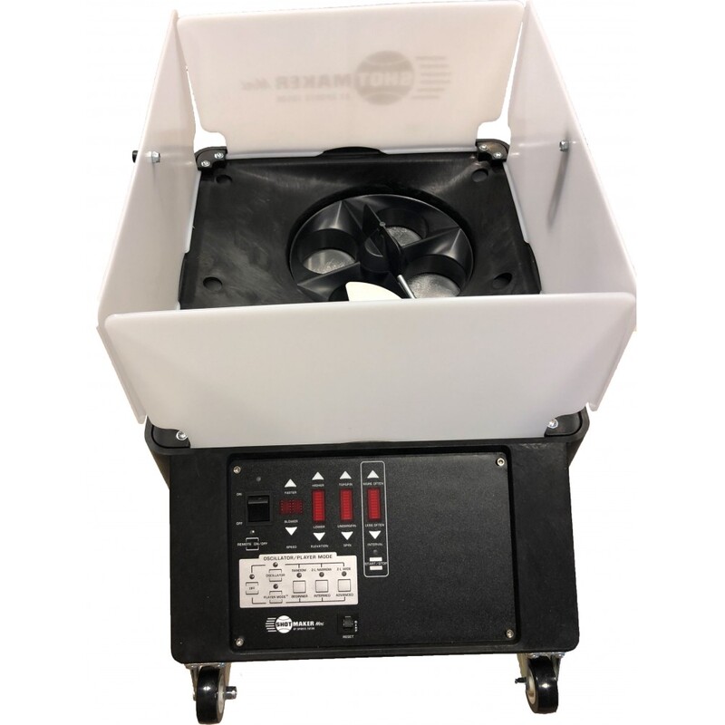 The SHOTMAKER MINI is a professional ball machine in a portable package. It features Internal Oscillation, which means that only the ball-throwing mechanism inside the machine moves to change the side-to-side position of the ball throws, instead of pivoting the entire machine. Internal Oscillation disguises where the ball will be thrown, and is also much quicker throwing balls from spot to spot.